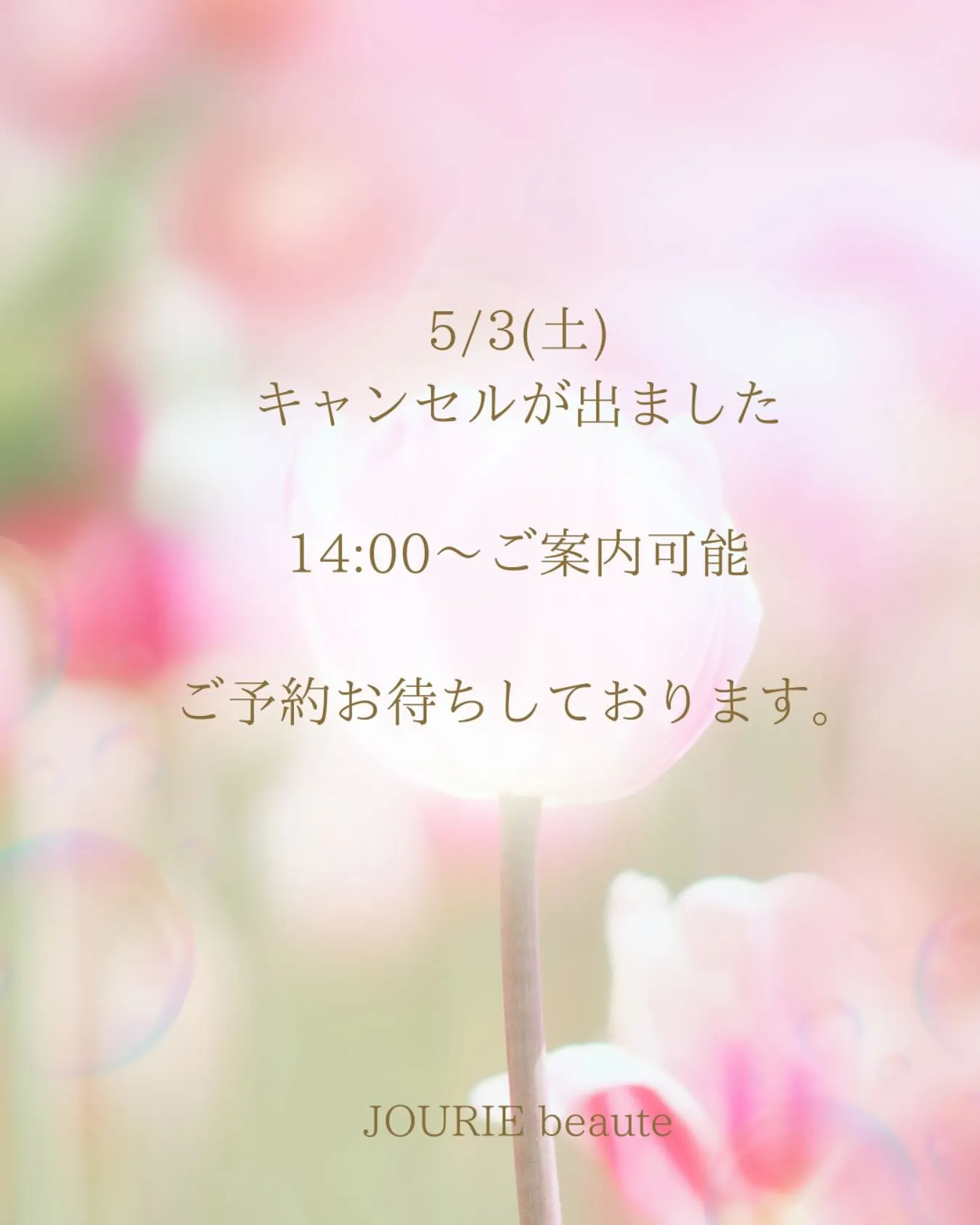 5/3(土)14:00〜キャンセルが出ました
